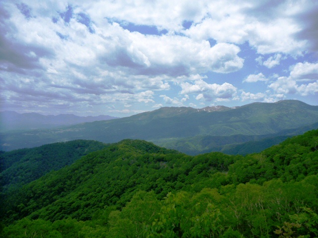 48km地点付近、コース最高地点の弁天山(1,650m)からは視界が一気に開け、空と大地が広がるスカイビューを楽しめた。