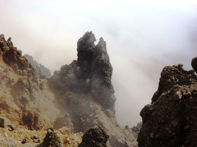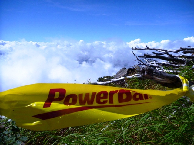 剣ヶ峰山頂はガスに包まれており、残念ながら眺望は得られなかった。しばしガスが晴れるのを待つことも考えたが、今回は先を急ぐことにした。