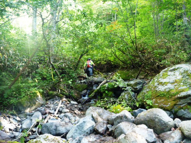 エイド2からエイド3までは28.5km。コース中で最も長い区間である。前半はロード、林道と比較的走りやすい道が続いたが、後半は状況が一変。コースは険しさを増し、最後には沢登りが待ち構えていた。