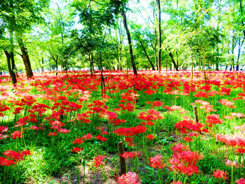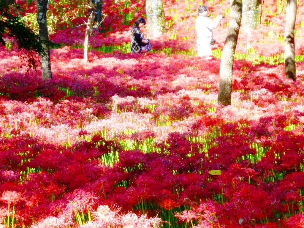 真紅に染まる秋の風景、曼珠沙華の群生地へ