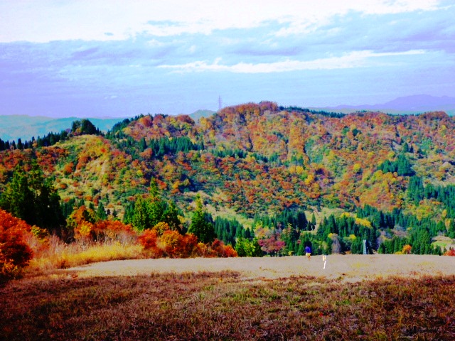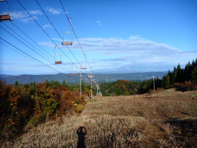 高度を上げるにつれて、色づいた上越の山々が目に飛び込んでくる。見事な紅葉が疲労を吹き飛ばしてくれた。高度を上げていくと紅葉で色づいた上越の山並みの景色が見事だった。