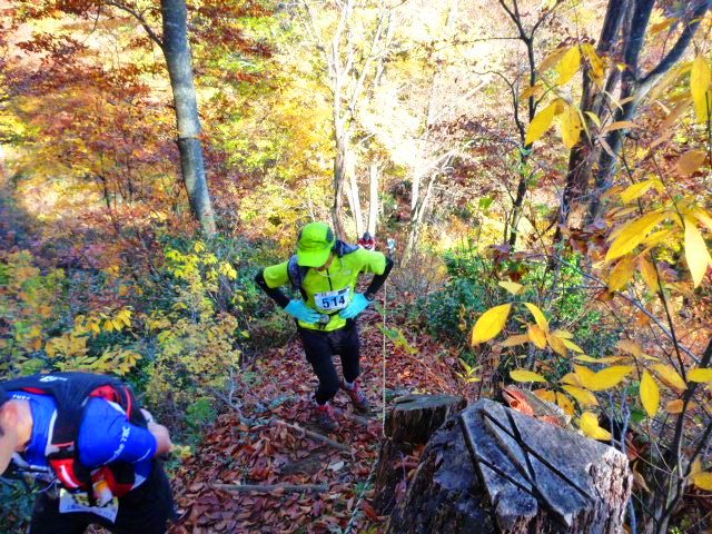 プロデュースは石川弘樹氏。彼の手がけたコースならば、間違いなく面白いはず。晩秋の紅葉の中、ゲレンデ・林道・トレイルをバランス良く組み合わせたアップダウンに富んだ35km。制限時間は7時間。走りごたえのある中距離レースである。