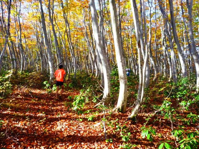 続くブナ林のトレイルは落ち葉が敷き詰められ、フカフカの極上トレイル。あまりの快適さに「ずっとここを走っていたい」と思わせる区間だった。