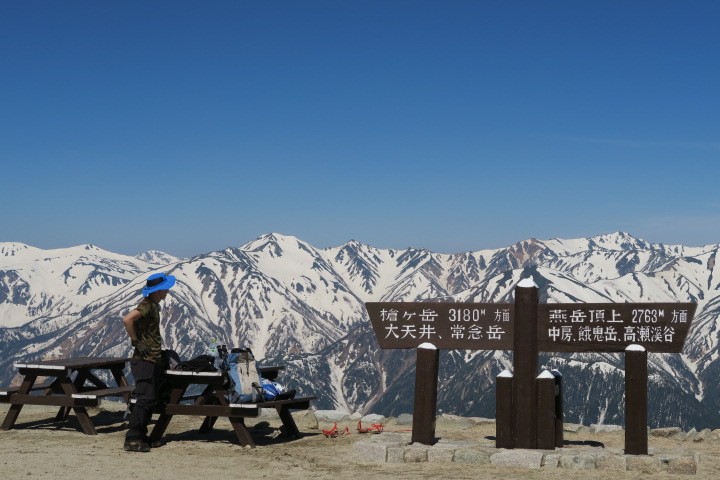 この日も、雲ひとつない快晴の空のもと、槍ヶ岳、大天井岳、穂高連峰、さらには笠ヶ岳や裏銀座の峰々まで一望できた。