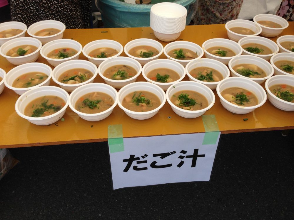 仲間から差し入れられた冷えた炭酸が、火照った身体に染み渡る。「だご汁」も絶品だった。阿蘇の郷土料理で、団子と野菜が入った味噌仕立て。疲れた身体に優しく、しっかり腹持ちもする。