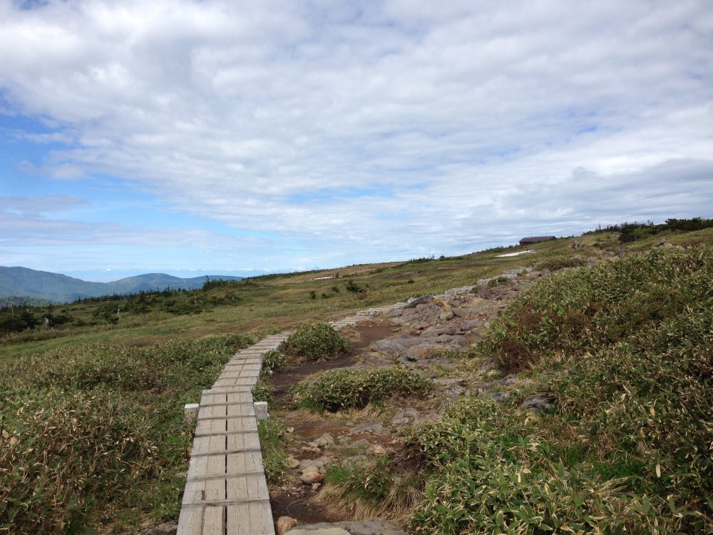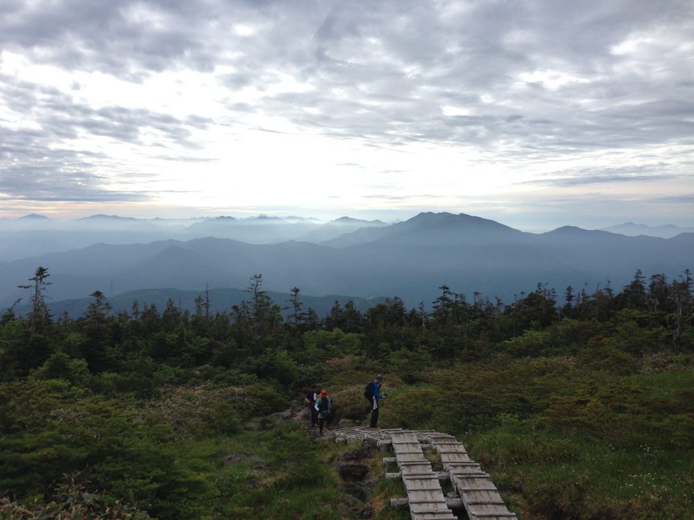 神楽ヶ峰(2030m)を越え、雲尾坂の急登を登り切ると、突如として目の前に広がる湿原の景色に息を呑んだ。遠くにはまだ雪をいただいた北アルプスの山々の姿も望めた。