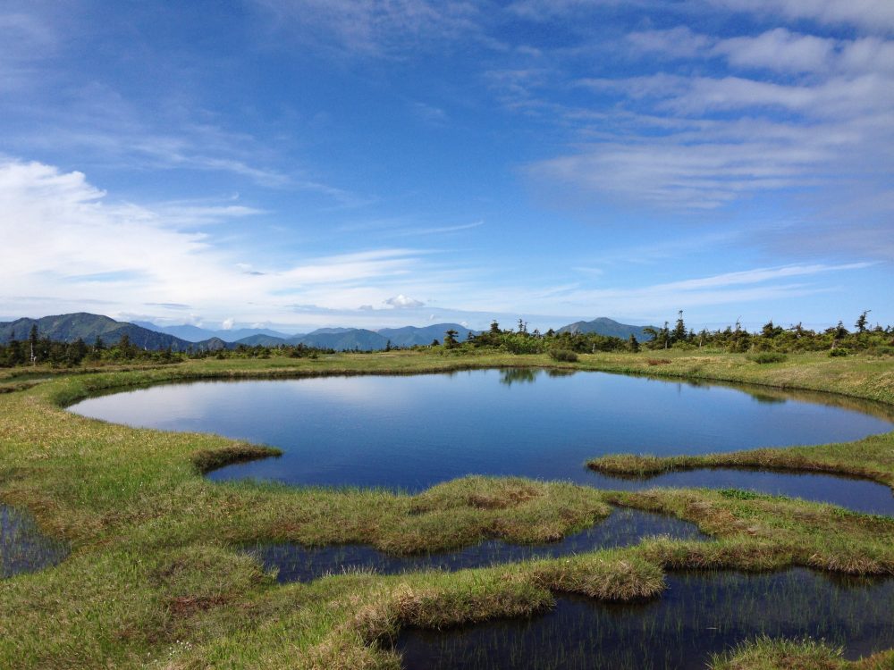 苗場山の最大の魅力は、山頂部に広がる広大な高層湿原である。山頂一帯は約4km四方にわたり平坦で、その中に大小600もの池塘が点在する。その景観はまさに「天空の楽園」と呼ぶにふさわしいスケールであり、想像以上の感動を与えてくれた。