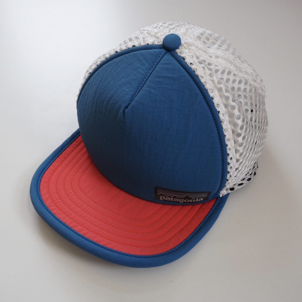 キャップは日差しを避けるだけでなく、頭上から落ちてくる木の枝や小石などから頭部を保護する重要なアイテムである。使用しているのは、アメカジテイストのトラッカーキャップ。個人的には、これを被った女性はなぜか可愛く見えると思っている。通気性と吸湿性に優れており、つばを丸めて収納できる利便性も魅力。自分にはややサイズが大きいが、ブルーとレッドのカラーリングが気に入っており、愛用している。