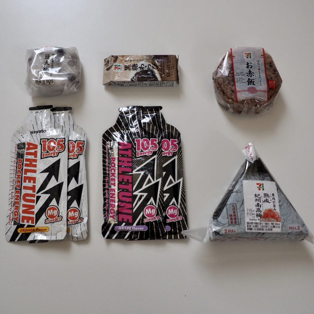 特におにぎりや和菓子(黒糖わらびなど)は行動中でも食べやすく、味の満足度も高いため、自分にとって定番の補給食である。