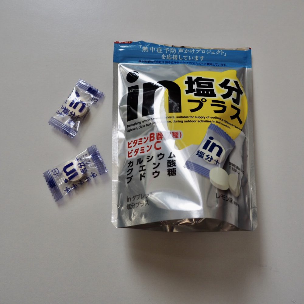 このタブレットは、汗で失われやすい塩分に加え、ビタミンB群、ビタミンC、クエン酸を含む。夏場の熱中症対策として特に有効である。発汗量に応じて30分から1時間に1粒を、水分と一緒に摂取することが推奨される。必要な個数をジップ付きポリ袋に入れて携行している。