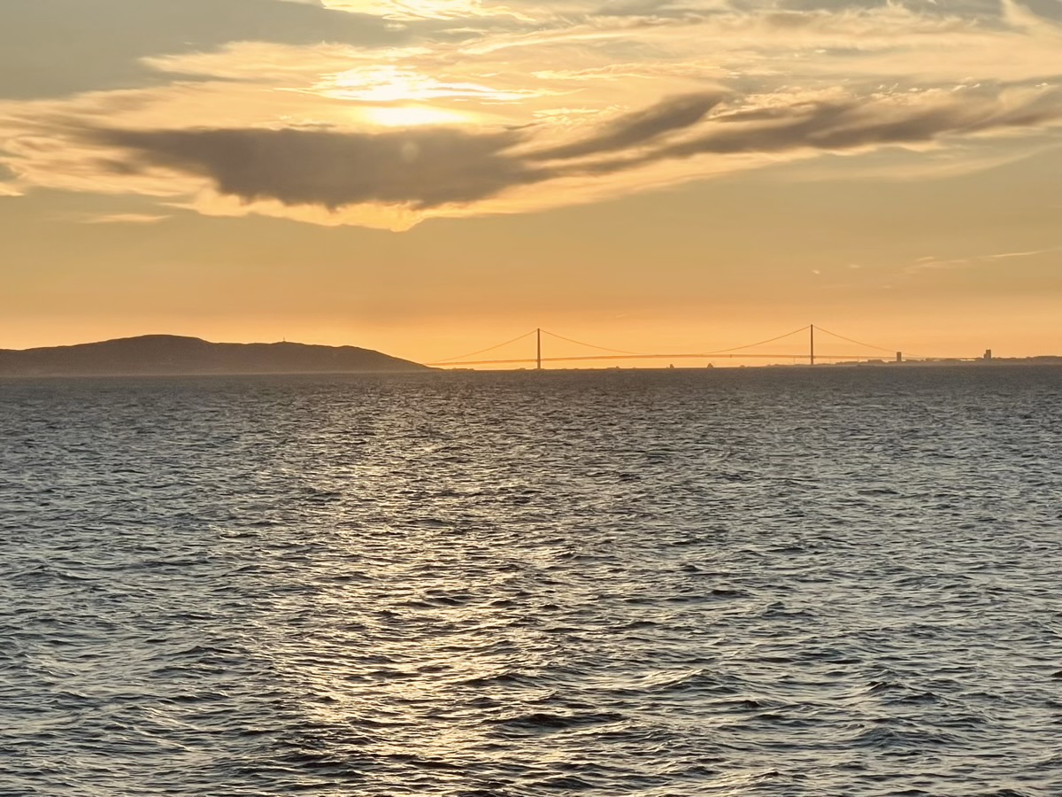 淡路島に沈む夕陽と、雄大な明石大橋。 「やっぱり来て良かった」と思える瞬間があるから、旅はやめられない。明朝には九州再上陸。九州一周自転車旅の第二弾の本格スタートに向け静かに気持ちを整えた。