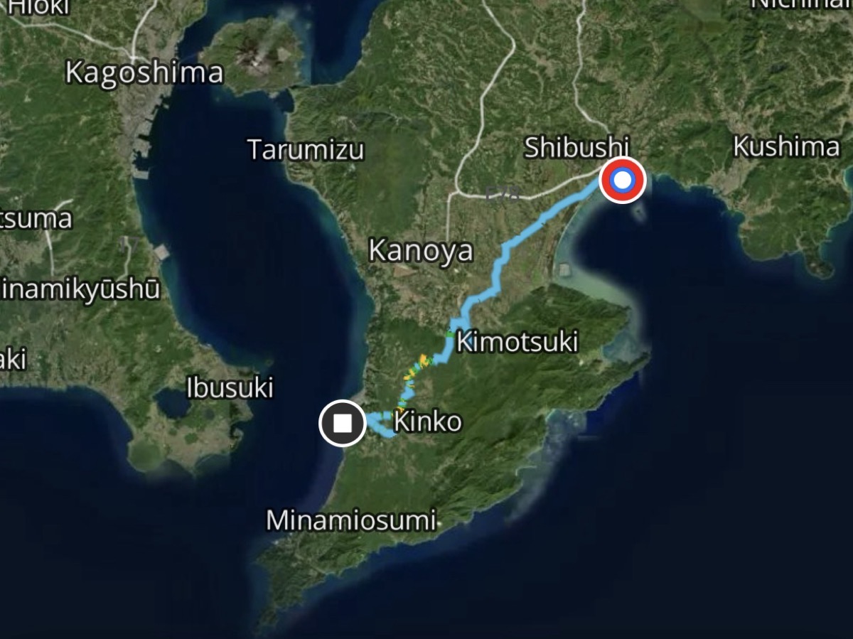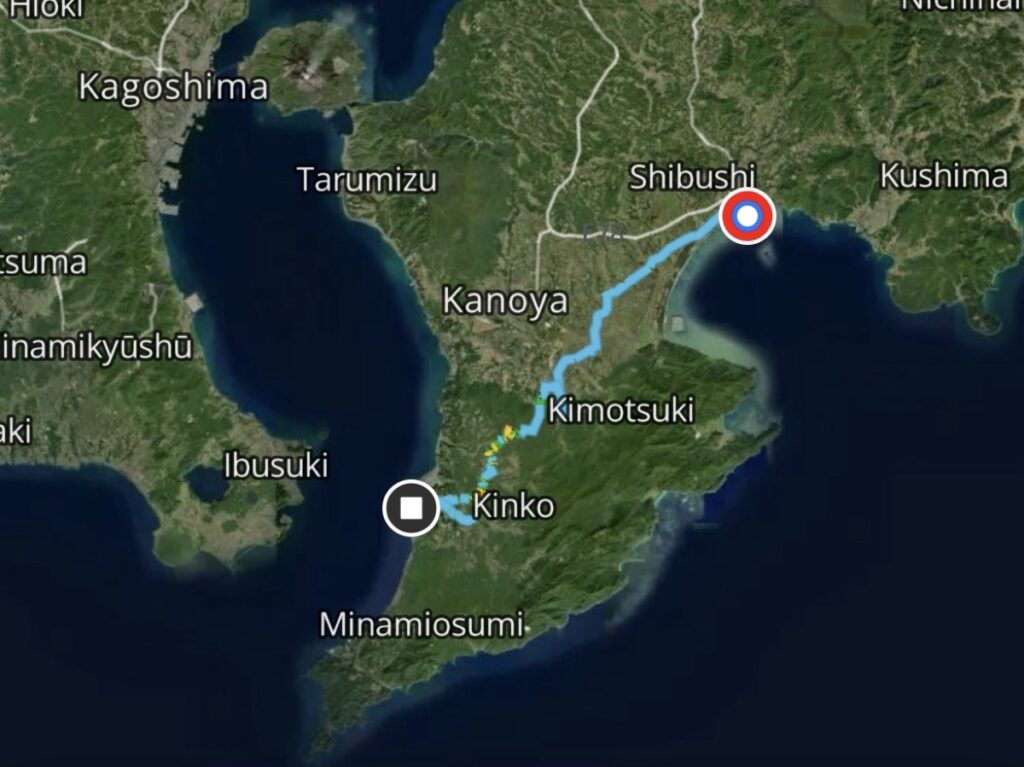 DAY2はフェリーで志布志港に到着し、九州に再上陸。大隈半島を縦断して錦江湾側へと抜ける一日となった。