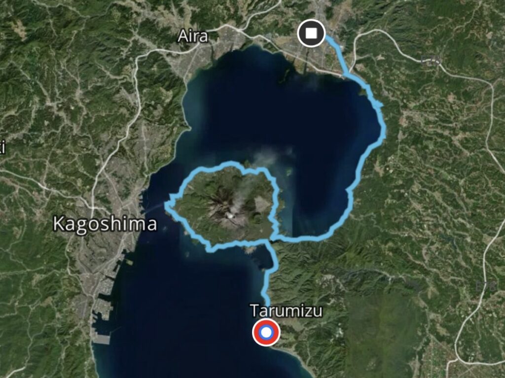 桜島一周約35kmを走り終える頃、激しい雨に見舞われた。