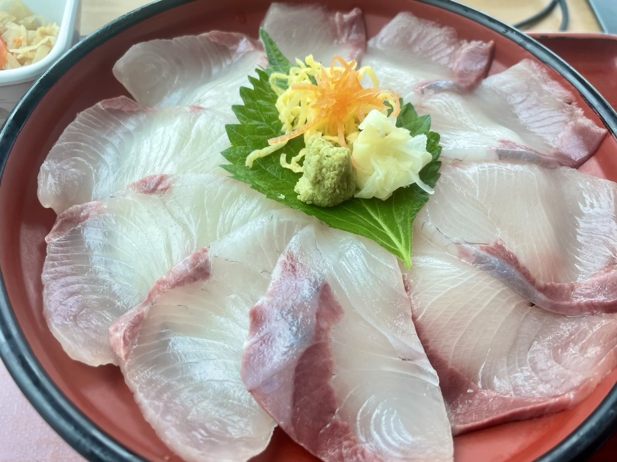 昼食は道の駅たるみずで、ブランド魚「ブリ大将」と「海の桜勘」の海鮮丼を味わった。暑さで食欲が落ちても、酢飯はなぜか食が進む。見た目が似ているブリとカンパチだが、味の違いは舌でしっかり感じられた。