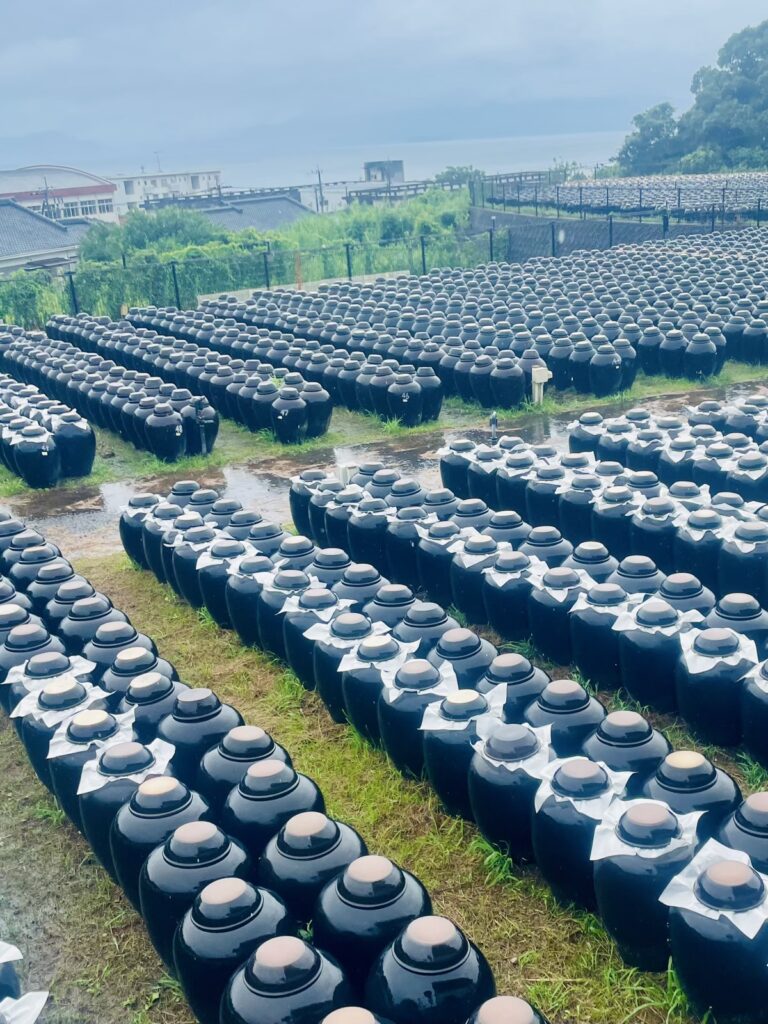最後に訪れたのは霧島市福山町の黒酢ガーデン。江戸時代から続く壺造りの黒酢文化に驚嘆した。屋外に大量の壺が整然と並ぶ光景もまた美しかった。