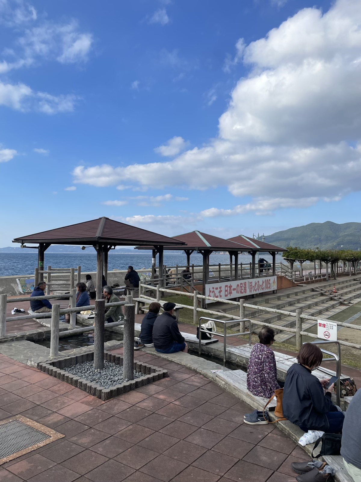 本日の目的地の小浜に到着。宿のチェックインまでまだ時間があったため、「小浜温泉足湯 ほっとふっと105」で足湯を楽しんだ。