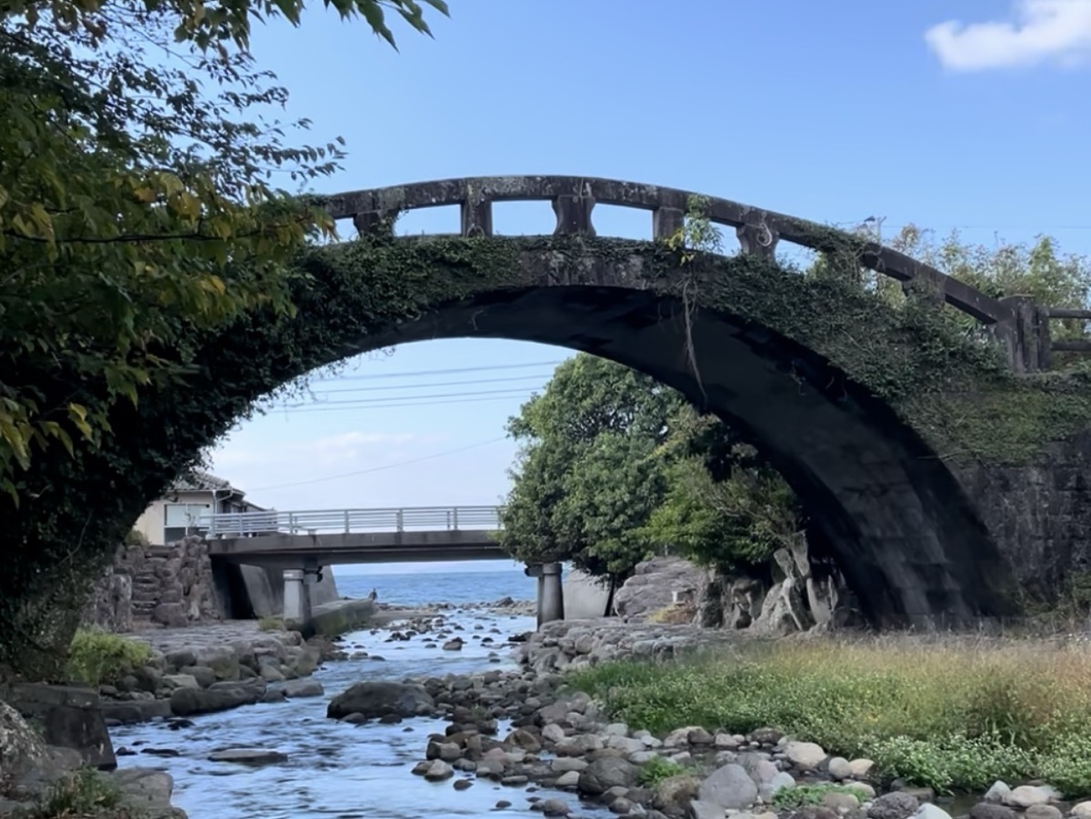 途中、江戸後期に架けられたとされる金浜眼鏡橋にも立ち寄った。小ぶりながら、どこか凛とした風情ある佇まいが印象に残る。