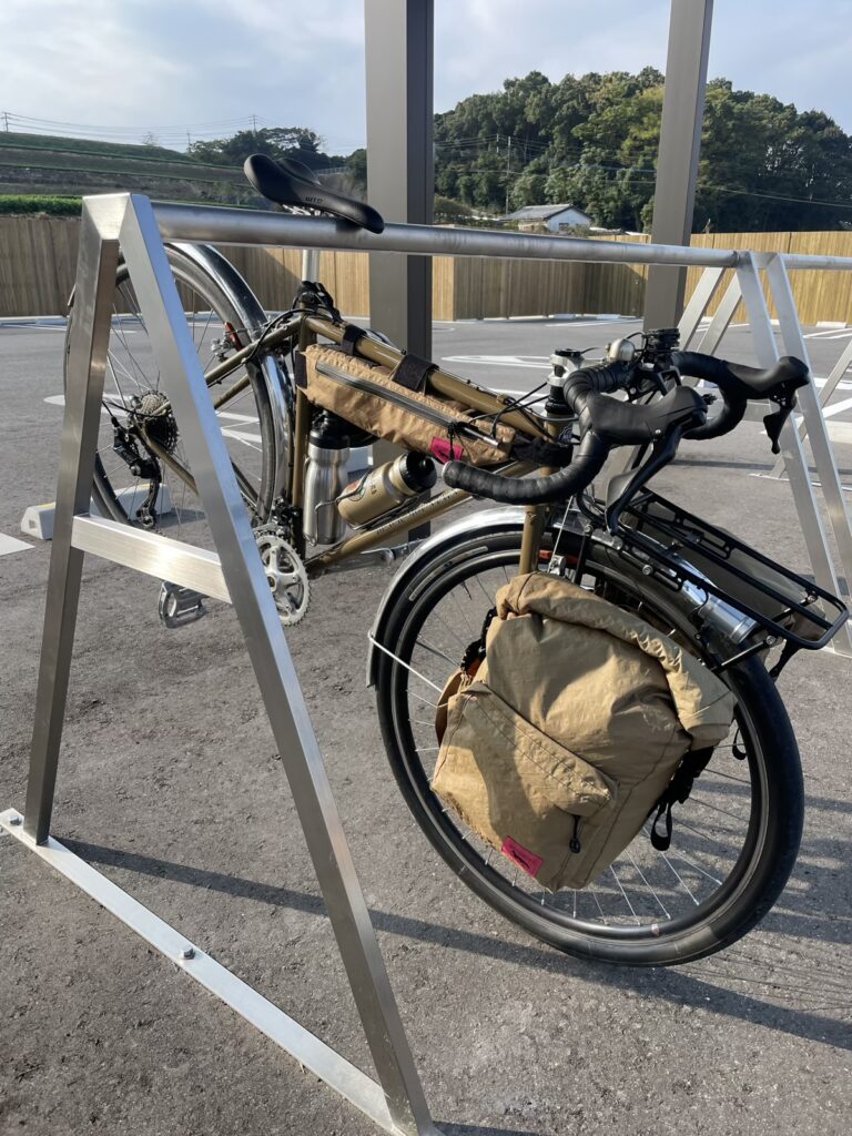 丘陵地の広大な畑地に囲まれた「道の駅 251いいもりじゃがーロード」で小休止を取った。そこに設えられていたサイクルラックは、ステンレスのヘアライン仕上げが印象的で、これまで見てきた中でも最も美しいものだった。自転車を深く理解する人が関わっているのだろうと、自然に想像させられた。