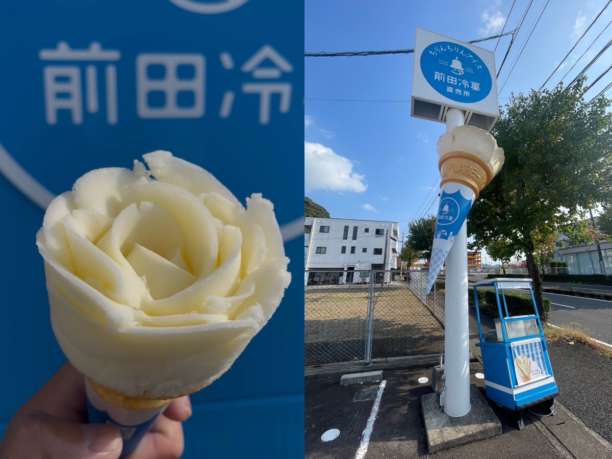 道中、長崎名物「チリンチリンアイス」の本社兼直売所を見つけ立ち寄った。創業65年、バラの花のように盛り付けられるのが特徴だ。どこか懐かしく、やさしい甘さで、疲れた身体に染み渡った。